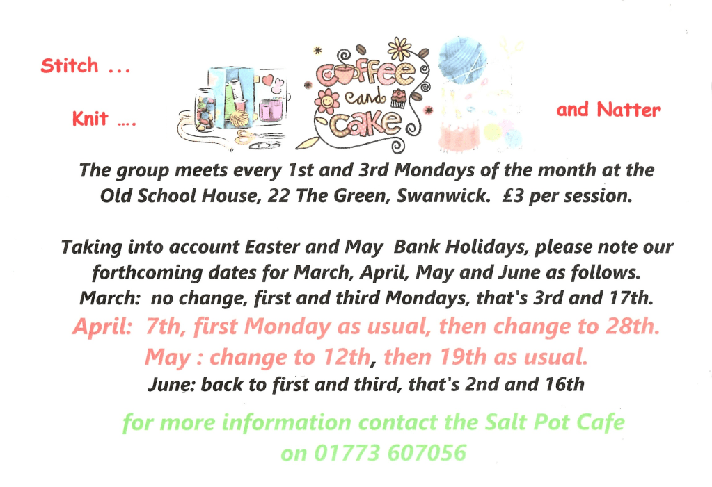Swanwick and Pentrich Anglican churches are part of the “Butterley Churches” group comprising All Saints Church Ripley, St. Andrew’s Church Swanwick and St. Matthew’s Church Pentrich. Contact details for St. Andrew’s and St. Matthew’s are: 01773 570011 swanpenchurches2@gmail.com
